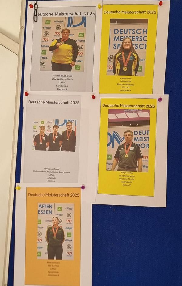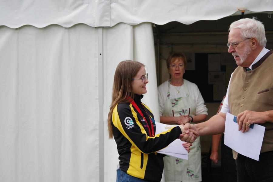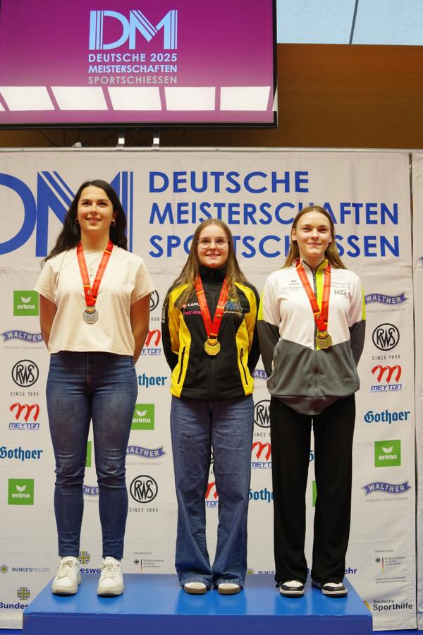 Am Sonntag, den 24.08.2025 war der Luftgewehrwettkampf angesagt, bei dem Angelina, Larissa und Carmen dann für die SG Neustadt an den Start gingen. Mit 617,4 Ringen wurde es für Angelina der tolle 25 Platz unter 106 Teilnehmerinnen. Carmen schaffte es mit 315,7 Ringen auf Platz 34 und Larissa mit 315,4 Ringen knapp dahinter auf Rang 36. In der Mannschaftswertung wurde es dann Rang 13.