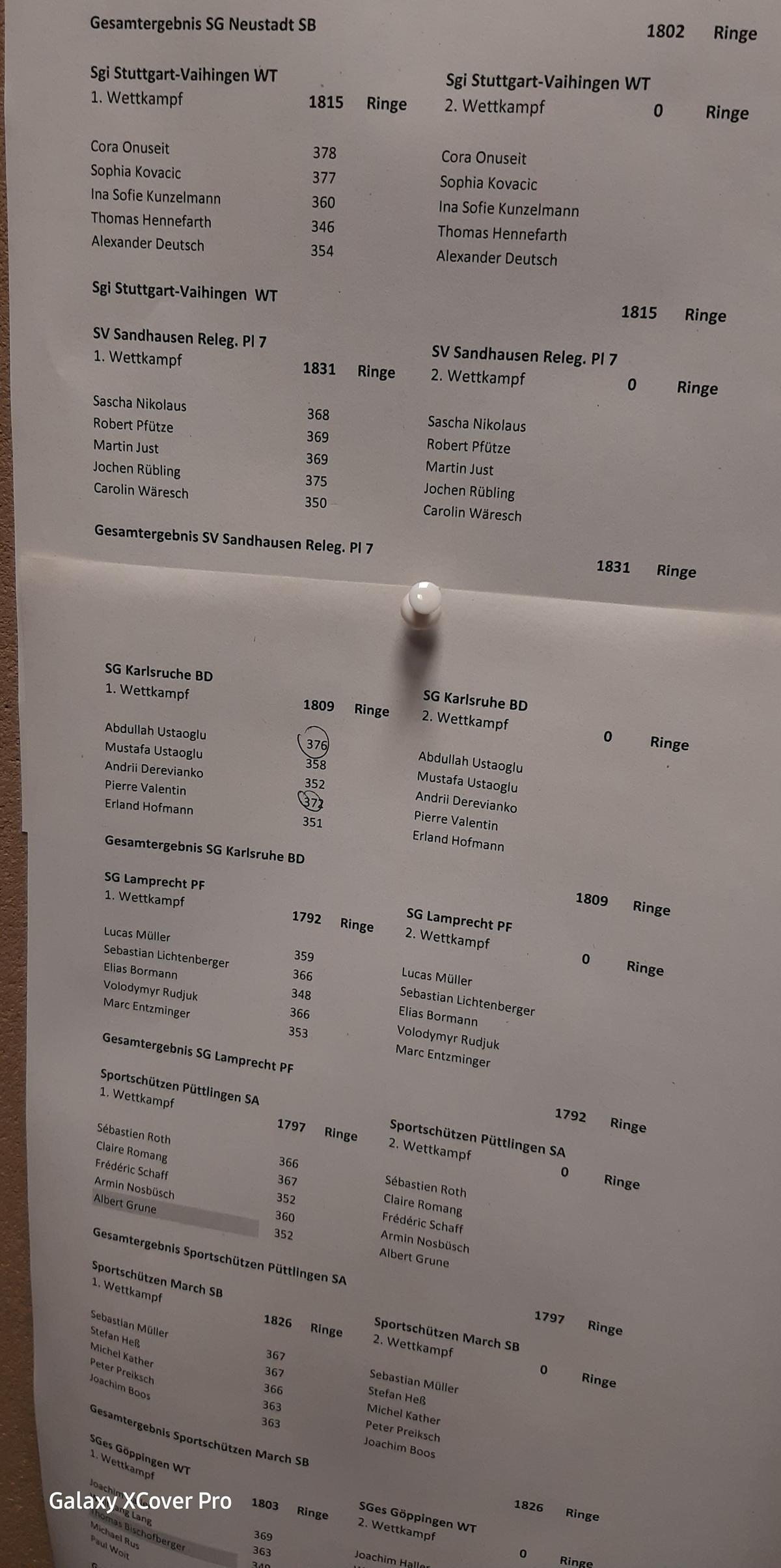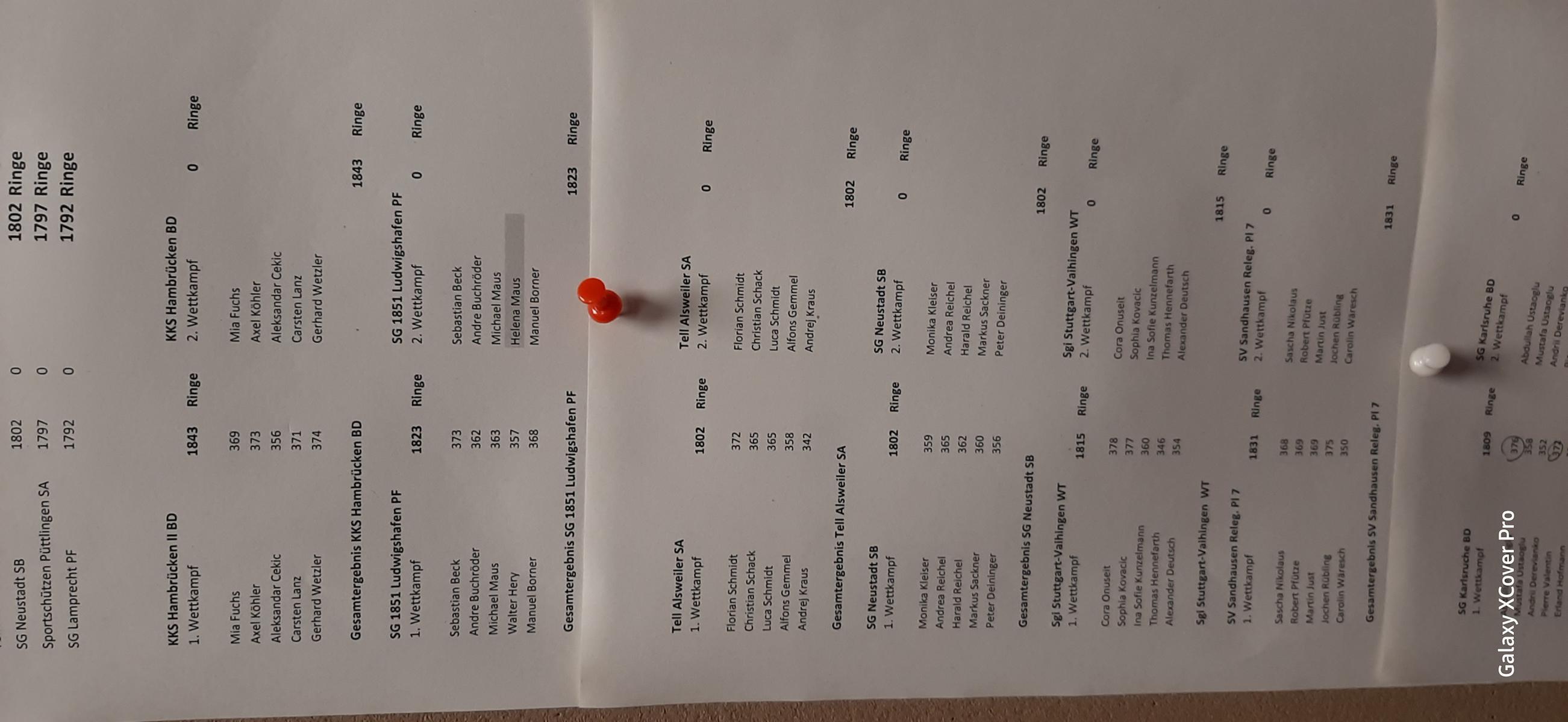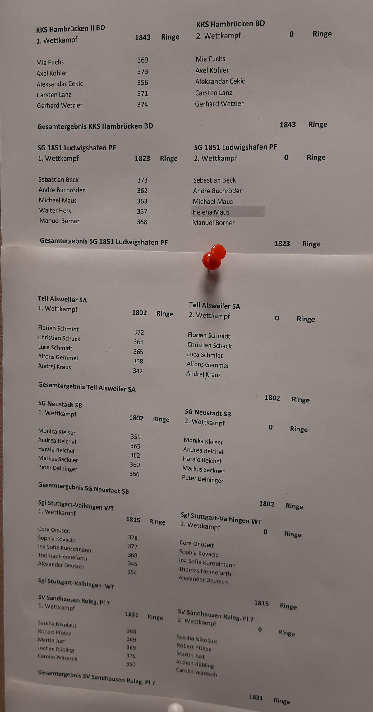 Unsere Mannschaft belegt den echt starken 4. Platz in dieser hochkarätigen Veranstaltung, Aufsteiger sind der KKS Hambrücken II LP und und die Sportschützen March LP aus unserer Südbadenliga. Einzig noch der SSV Sandhausen LP als Absteiger aus der 2. Bundesliga ist noch vor unserer Mannschaft .