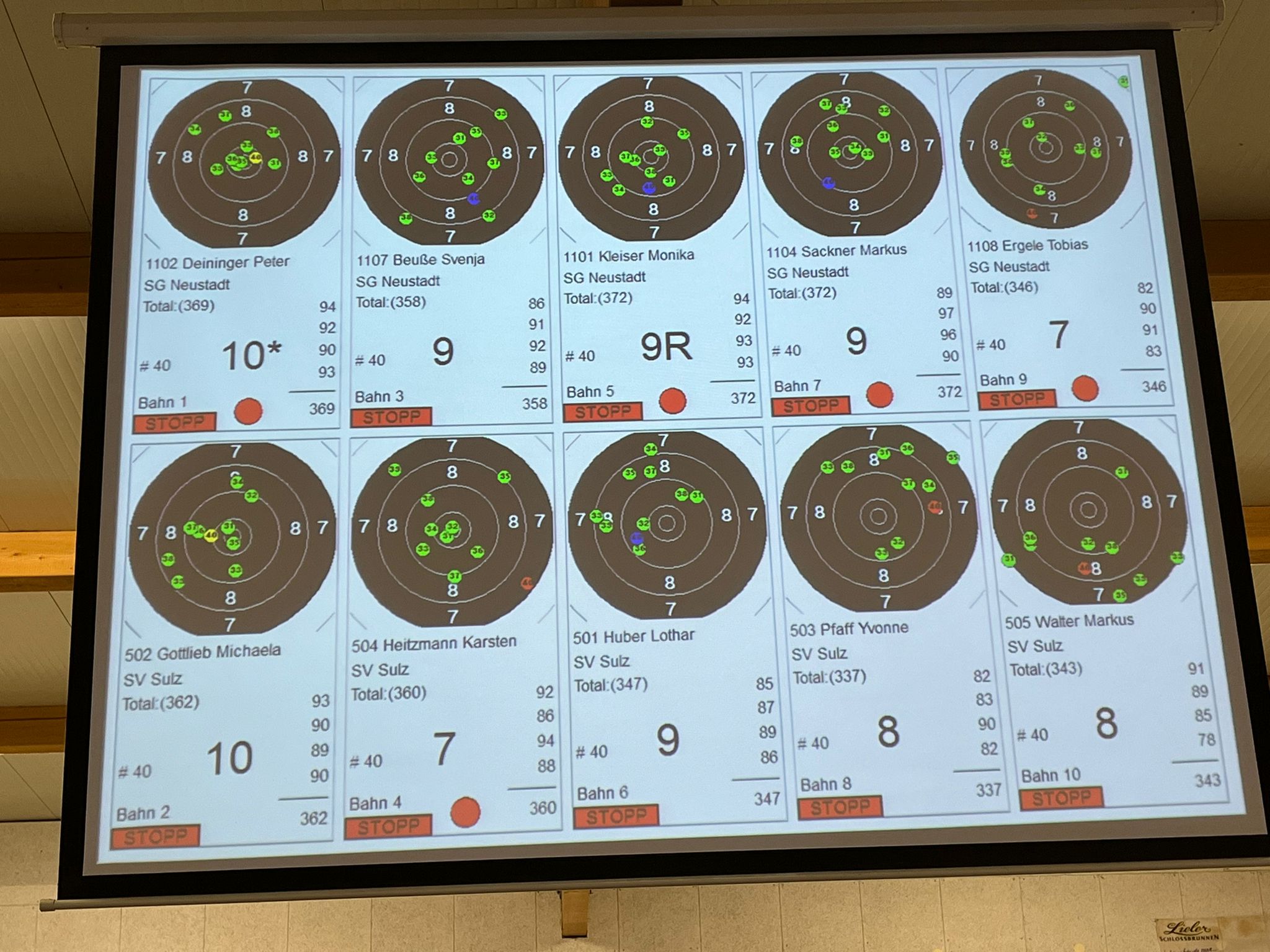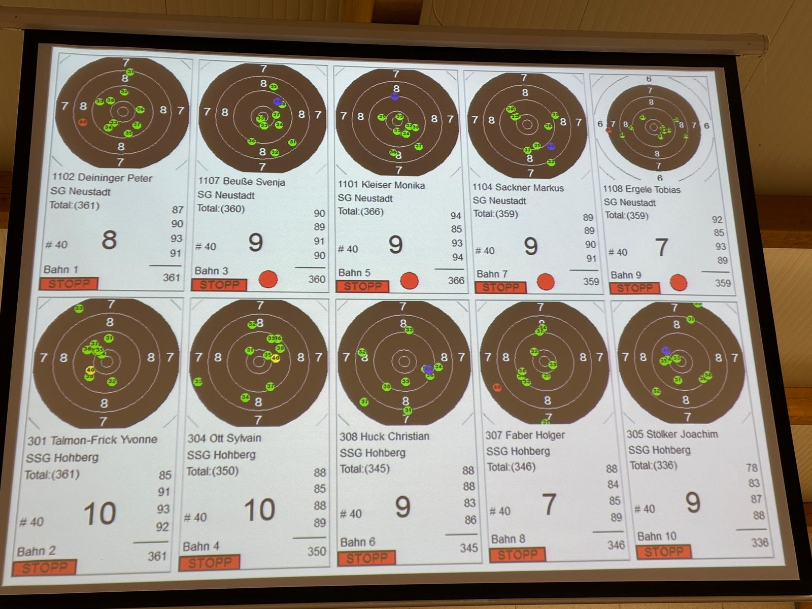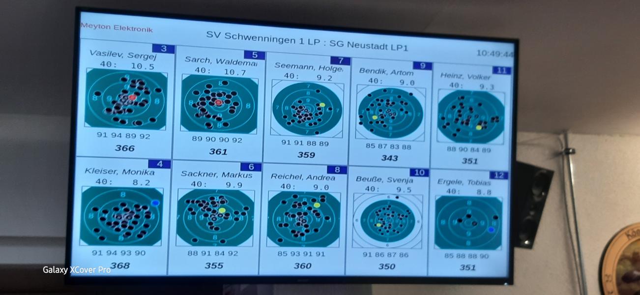 Am 5. Wettkampftag durften wir zum 1. Mal bei uns im Schützenhaus die Wettkämpfe 9 und 10 bestreiten. Den 1. Wettkampf gegen unsere Pistolenfreunde vom SV Schwenningen LP1 gewannen wir mit 4:1 . Auch den 2. Wettkampf konnte unsere Mannschaft SG Neustadt LP1 mit 4:1 gegen unseren Gegner SV Freiburg St. Georgen LP1 gewinnen.