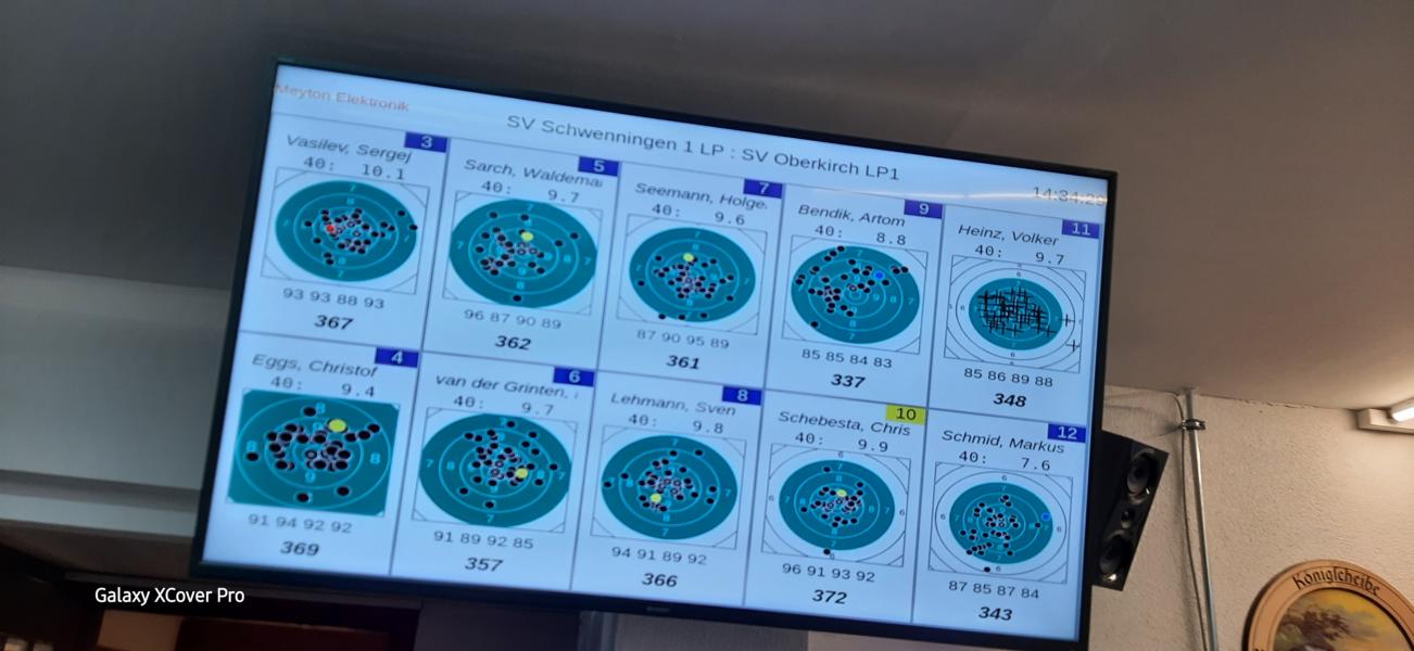 Die SSG Wehr LP1 beendet die Wettkampfsaison der Südbaden Liga Pistolenschützen ohne Niederlage mit der maximalen Ausbeute von 22:0 Mannschaftspunkten!! Dabei konnten die Luftpistolenschützen der SSG Wehr LP1 44 Einzelpunkte gewinnen und mussten nur 11 Einzelniederlagen einstecken. Ganz knapp dahinter kommt der SV Oberkirch LP1 mit nur 1 Niederlage mit 20:2 Mannschaftspunkten und 43:12 Einzelpunkten auf den 2. Tabellenplatz!! Der SV Schwenningen LP1 konnte unsere Mannschaft SG Neustadt LP1 noch am letzen Wettkampf vom 3. Platz auf den 4. Platz verdrängen und somit den Platz auf dem Treppchen erobern!!  Während die Schwenninger ihren Wettkampf mit 4:1 gegen den SV Freiburg St. Georgen LP1 gewannen, hat unsere Mannschaft mit 0:5 gegen den SV Oberkirch LP1 verloren.