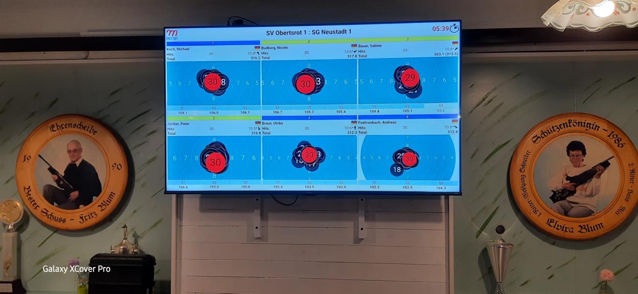 In der 1. Runde traten  der SV Freiburg-St. Georgen LG-A2 gegen unsere SG Neustadt LG-A2, und der SV Egringen LG-A1 gegen unsere Mannschaft SG Neustadt LG-A1 zum Wettkampf an. Unsere Mannschaften konnten ihre beiden Wettkämpfe knapp mit je 2:1 für unsere SG Neustadt entscheiden. Da wir bei uns in unserer neuen Luftdruckhalle 12 modene Schießstände haben, konnten wir um 10 Uhr den Doppelwettkampf gemeinsam durchführen.