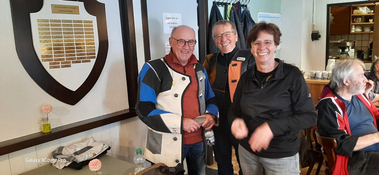 Wir Schützen von den restlichen 4 Mannschaften traten dann gemeinsam um 13 Uhr zum Paralellwettkampf an. Dabei kämpfte SV Egringen LG-A2 gegen SG Neustadt LG-A2 und SV Ihringen LG-A1 gegen SV Egringen LG-A1 um die Punkte. Ihringen 1gewann glatt mit 3:0 gegen Egringen 1 und unserer Mannschaft konnte sich knapp mit 2:1 gegen Egringen 2 durchsetzen. Danach trafen wir uns alle noch zum gemütlichen Ausklang bei unserer Schützenwirtin Beate zum Plausch.