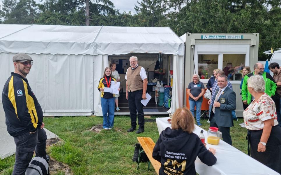 Am Sonntag, den 24.08.2025 war der Luftgewehrwettkampf angesagt, bei dem Angelina, Larissa und Carmen dann für die SG Neustadt an den Start gingen. Mit 617,4 Ringen wurde es für Angelina der tolle 25 Platz unter 106 Teilnehmerinnen. Carmen schaffte es mit 315,7 Ringen auf Platz 34 und Larissa mit 315,4 Ringen knapp dahinter auf Rang 36. In der Mannschaftswertung wurde es dann Rang 13.