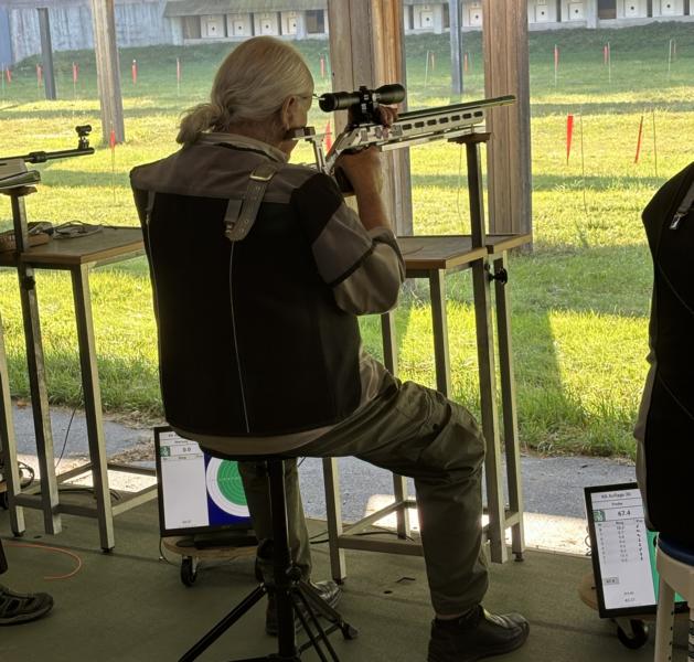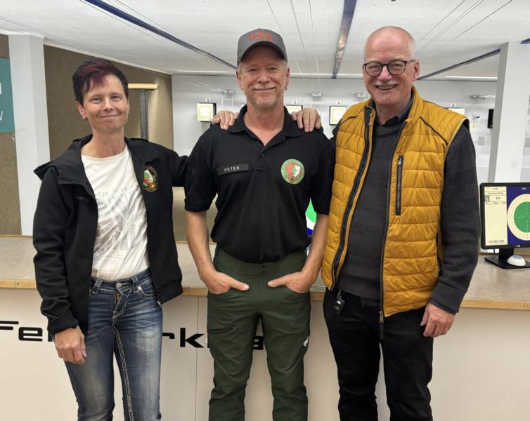 Im letzten Durchgang am späten Nachmittag waren dann Tanja, Peter und Christoph gefordert, die zusätzlich auch als Mannschaft antraten. Jeder hat sich an diesem Tag nach seiner Art und Weise vorbereitet und natürlich viel vorgenommen. Tanja kam gut in den Wettkampf und war bis zum 25. Schuss auf einem vorderen Platz. MIt 302,4 Ringen und dem supertollen 11. Platz, unter 65 Starterinnen in der Klasse Senioren I, darf sie aber mehr als zufrieden sein. Christoph machte ebenfalls einen soliden Wettkampf und findet sich mit 302,6 Ringen und Rang 27 im vorderen Drittel. Leider hatte Peter etwas Pech mit der Auflage und fand so nicht wie erwartet in seinen Wettkampf. Am Ende musste er sich mit 290,2 Ringen zufrieden geben, was nach seiner starken Leistung in den Landesmeisterschaften natürlich weit unter seinen eigenen Erwartungen lag. Mit der Mannschaft kamen die drei dann auf den 27. Platz.