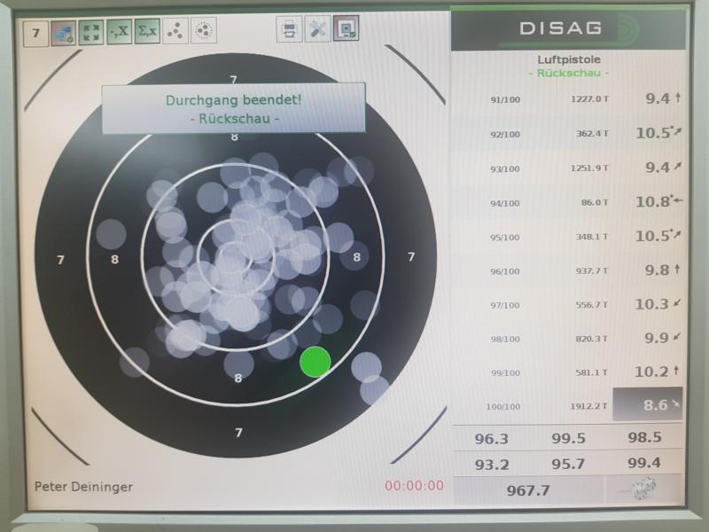 Dabei erreichten unsere Schützen sehr gute Plazierungen. Gewonnen hat in der Disziplin Luftpistole Peter Deininger mit 967,7 Zehntelringen vor Sebastian Müller mit 960,8 Zehntelringen und Markus Sackner mit 923,9 Zehntelringen. In der Disziplin Luftpistole Auflage hat unsere Katharina mit sagenhaften 1055,3 Zehntelringen vor Carina Rehm mit 1005,2 Zehntelringen und Ursula Junge mit 962,9 Zehntelringen gewonnenPeter Jordan hat 1059,6 Zehntelringe erreicht und damit um unglaubliche 0,2 Zehntel bei 100 Schüssen den 1. Platz verpasst. Sieger wurde Christhard Junge mit 1059,8 Zehntelringen. Der 2. Platz ist aber auch ein super Ergebnis.