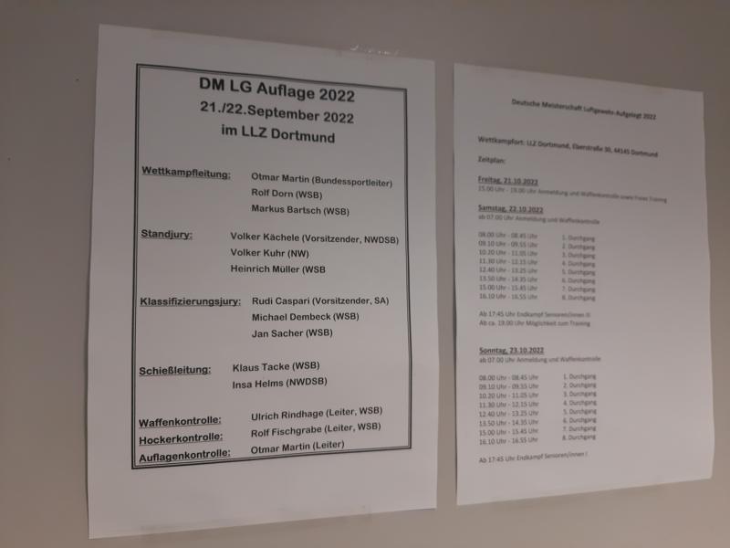 Am Wochenende 22. und 23.10.2022 fanden in Dortmund die Deutschen-Meisterschaftern der Auflageschützen im Luftgewehr statt. Dortmund bildet traditionell den Abschluss der Kugeldisziplinen innerhalb der Deutschen-Meisterschaften. Wir freuen uns, dass sich mit Peter Jordan, Nikolaus Willmann und Gerhard Rombach drei Schützen aus unserer Schützengesellschaft qualifiziert haben. Gemeinsam sind sie nach Dortmund aufgebrochen. Begleitet wurden sie von Barbara Jordan.