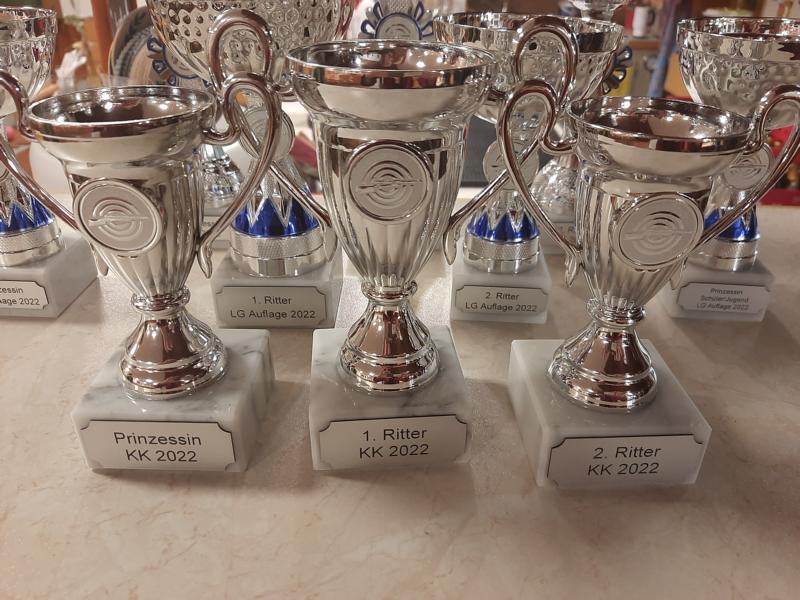 Die Ehrenscheibe 2022 gewann unser König Peter Deininger mit einem 10,5 Zehntelring. Auch die Namen von Mladan Jelic mit einem 10,4 Zehntelring und Khodor Hodroy einem 10,1 Zehntelring finden einen Platz auf der Ehrenscheibe.