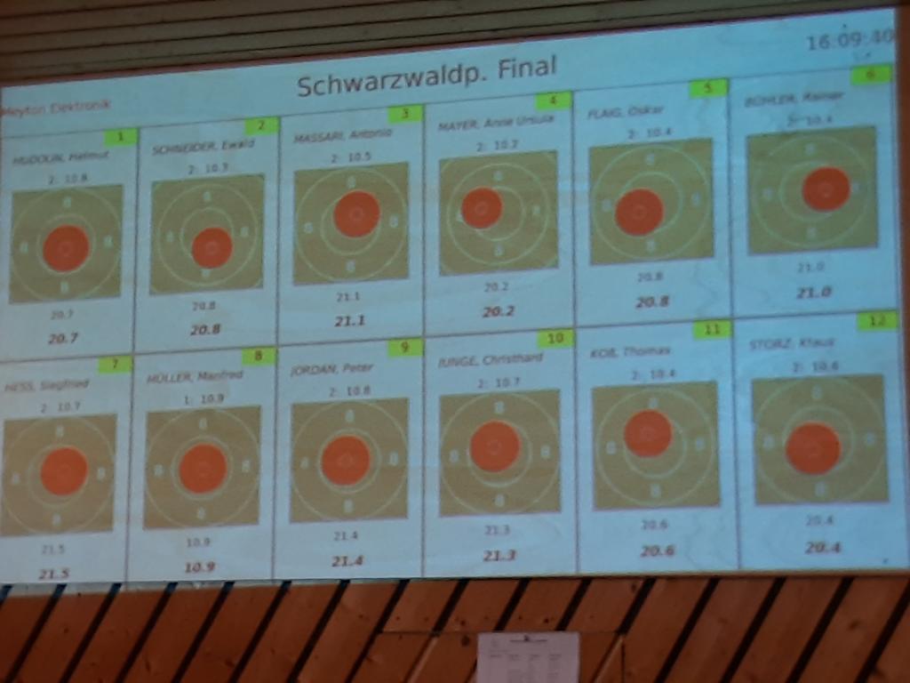Ernst und Nikolaus konnten sich nach den beiden Vorrunden für das kleine Finale qualifizieren. Peter schaffte es wieder ins große Finale. Auch dieses Jahr konnte der Vorjahressieger den " Scheichenden Phanter " nicht verteidigen.!! Dieses Jahr gab es mit Manfred Müller aus Mietersheim einen neuen Sieger. Er konnte sich im Finale mit dem 17. Schuss mit 169,0 Zehntel vor Ewald Schneider aus Dachtel mit 168,7 Zehntel durchsetzen. Dritte wurde Uschi Mayer aus Dachtel mit 158,7 Zehntel. Unser Peter Jordan wurde dieses Jahr 10. Sieger, Nikolaus landete auf dem 16. Platz, Ernst konnte den 19. Platz erobern, In der Mannschaftswertung konnte sich die Schützen von Dachel 1 mit 1904,1 Zehntelringen vor Mietersheim-INA mit 1894,8 Zehntel durchsetzen, den 3. Platz eroberte Oggersheim mit 1891,9 Zehntelringen, wir landeteten mit unsere SG Neustadt 1823 e.V. auf dem 6. Platz!