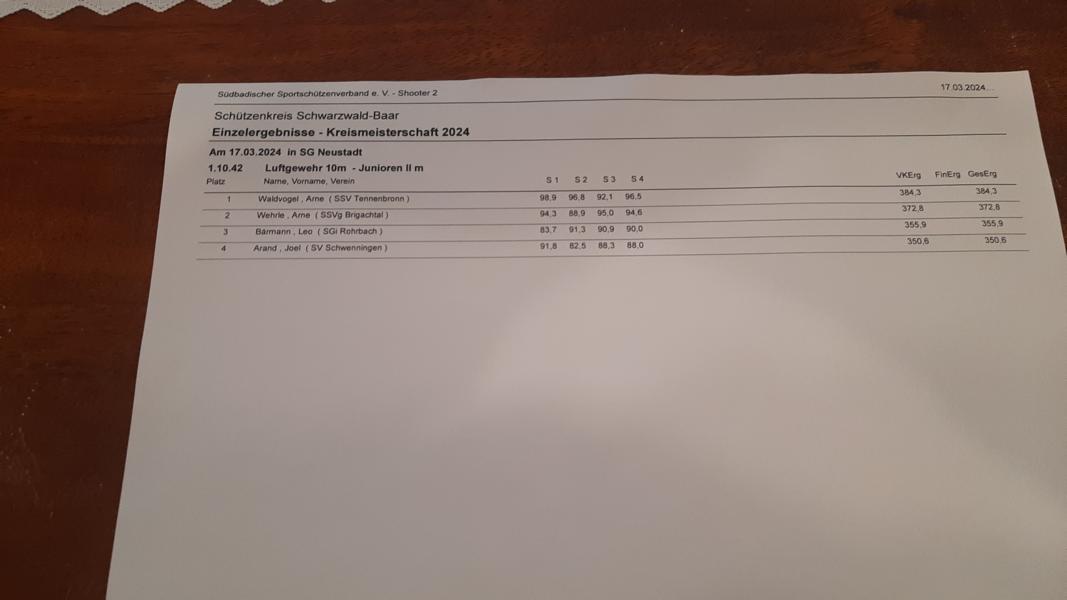 Junioren II - Arne Waldvogel (SSV Tennenbronn) mit 384,3 Zehntel