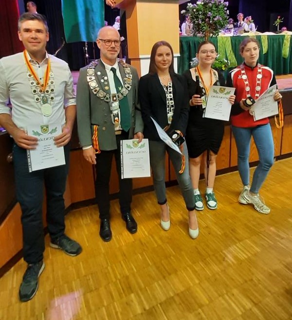 Alle Kreisschützenkönige-/innen bekamen eine Urkunde und der Landesschütenkönig und die Landesschützenkönigin Jugend bekamen ihre Königsketten überreicht.