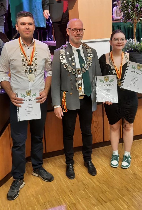 Herzlichen Glückwunsch dem König und der Königin und ihren Rittern und Prinzessinnen und allen teilnehmenden Schützen/innen. Wir gratulieren Thomas Kilian und Leonie Glatzel ganz herzlich zu diesen Ehren und drücken ihnen für das Bundeskönigschießen ganz fest die Daumen.