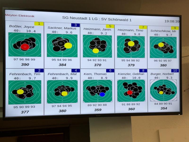 Es war super spannend und der Wettkampf wurde erst im Stechen zwischen Markus Sackner und Lena Bogdanski entschieden. Lena schoss im 1. Stechschuss eine 10 und Markus eine 8. Somit konnte SSVg Brigachtal LG3 knapp mit 3:2 gegen unsere Mannschaft SG Neustadt LG1 gewinnen. Somit haben wir am 4. Wettkampf zum 1. Mal verloren.