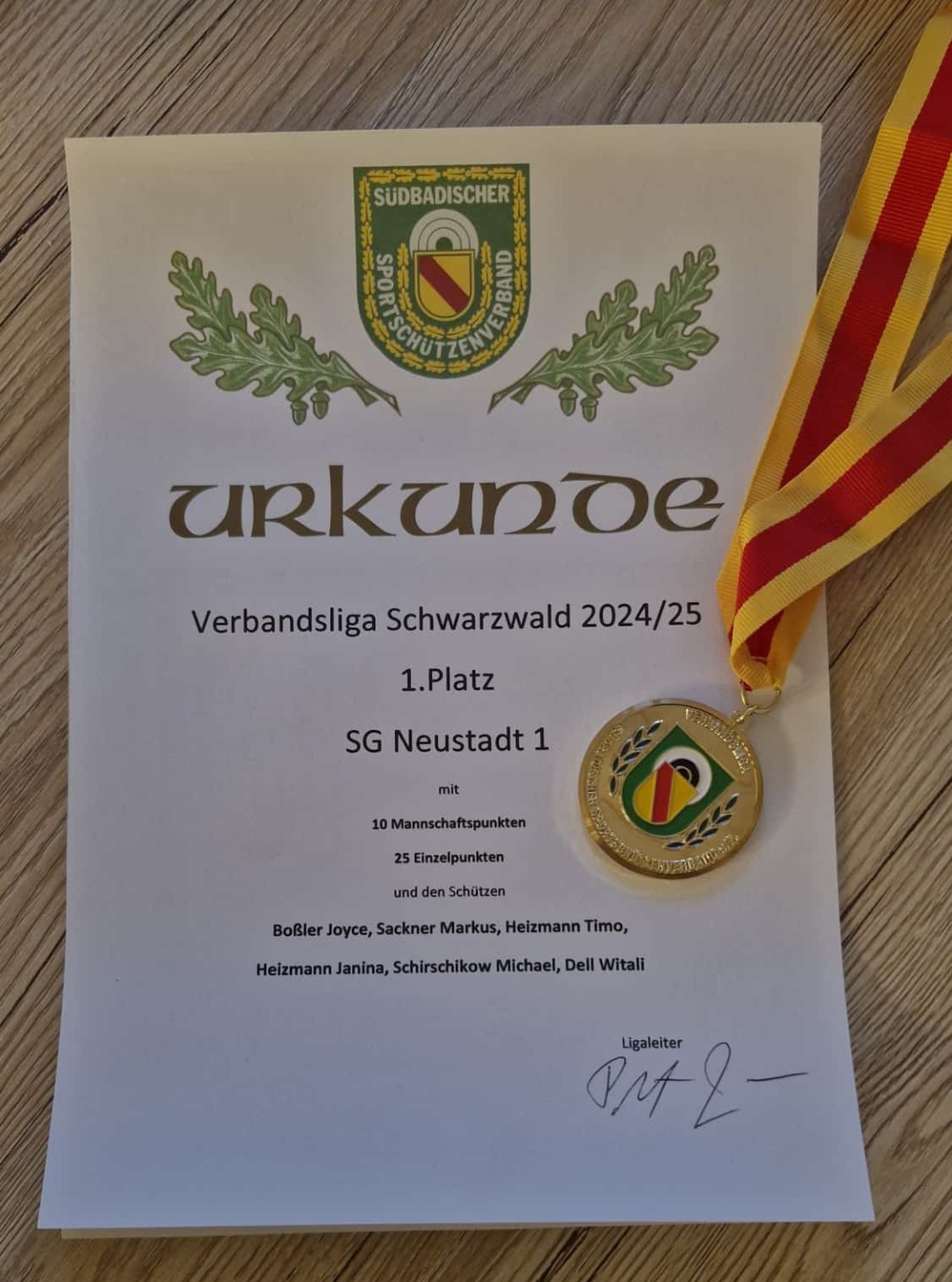 Aufstieg in die Südbadenliga - Was für eine Wahnsinnssaison für unsere LG-Schützinnen und -schützen. Nach dem tollen Aufstieg von der Kreisoberliga in die Verbandsliga Schwarzwald im letzten Jahr, konnte unsere LG-Mannschaft in einem spannenden Finale den Tabellenplatz 1 erobern und sich somit die Relegation in die Südbadenliga sichern.