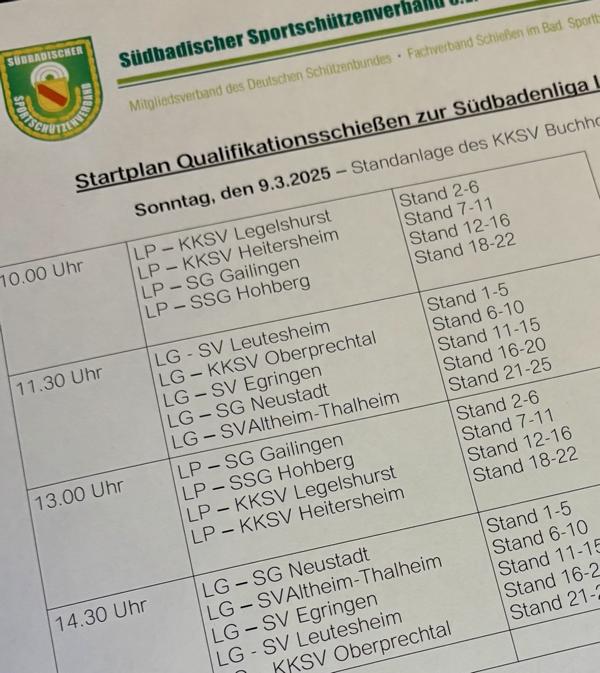 Am Sonntag, den 16.02.2025 fand in Tennenbronn das Finale der diesjährigen Verbandsliga Luftgewehr der Staffel Schwarzwald statt. Die diesjährigen Mannschaften in der Verbandsliga waren SSV Tennenbronn 2 + 3, SSVg Brigachtal 3, SSV Furtwangen 1, SV Schönwald 1, SV Aasen 1 sowie SV Tannheim 1 und unsere Mannschaft der SG Neustadt. Unsere Mannschaft bestand aus Joyce Boßler, Markus Sackner, Janina und Timo Heizmann sowie Michael Schirschikow und unserem Ersatzschütze Witali Dell.
