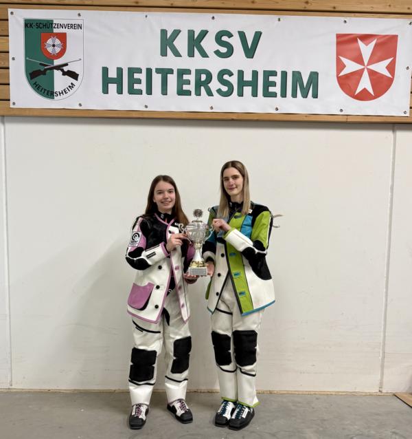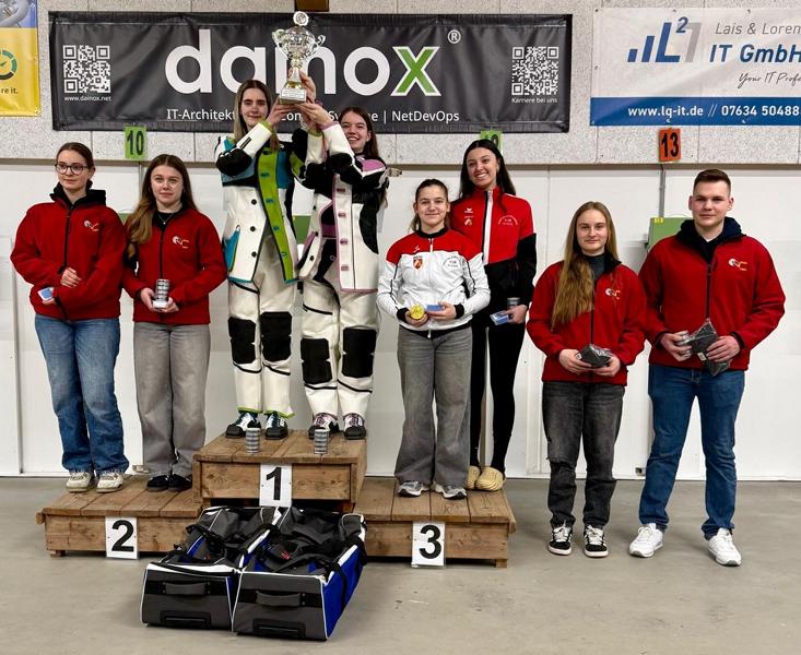Am 09.03.2025 fand zum wiederholten Male das internationale Luftgewehr Jugendturnier in Heitersheim statt. Das Jugendturnier ist bestückt mit den besten Nachwuchsschützen aus dem Dreiländereck Deutschland, Schweiz und Frankreich. Laut der Homepage des KKSV Heitersheim ist das Jugendturnier das Bestdotierte Turnier in dieser Art. Wir freuen uns, dass unsere Joyce Bossler auch in diesem Jahr wieder mit dabei war, in diesem Jahr bildete ist sie mit Larissa Gräßlin ein Team. Die Beiden lieferten einen richtig starken Wettkampf ab und schafften es über die Vorrunde bis ins Finale, welches sie dann sensationell für sich entscheiden konnten und so den Sieg und einen tollen Pokal mit nach Hause nehmen durften.