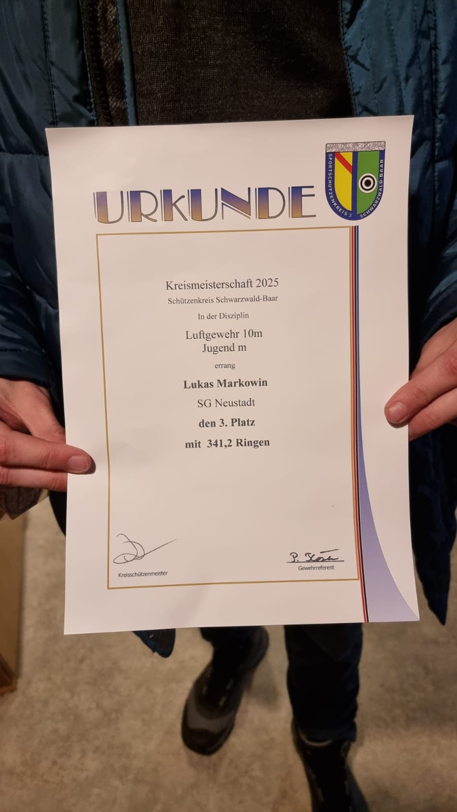 Pietro Spina (SG Neustadt) ist Kreismeister mit 332 Ringen in der Disziplin 25m Pistole.45 - Herren III Mladan Jelic mit 315 Ringen den 3. Platz (die Bronzemedallie) erkämpfen.