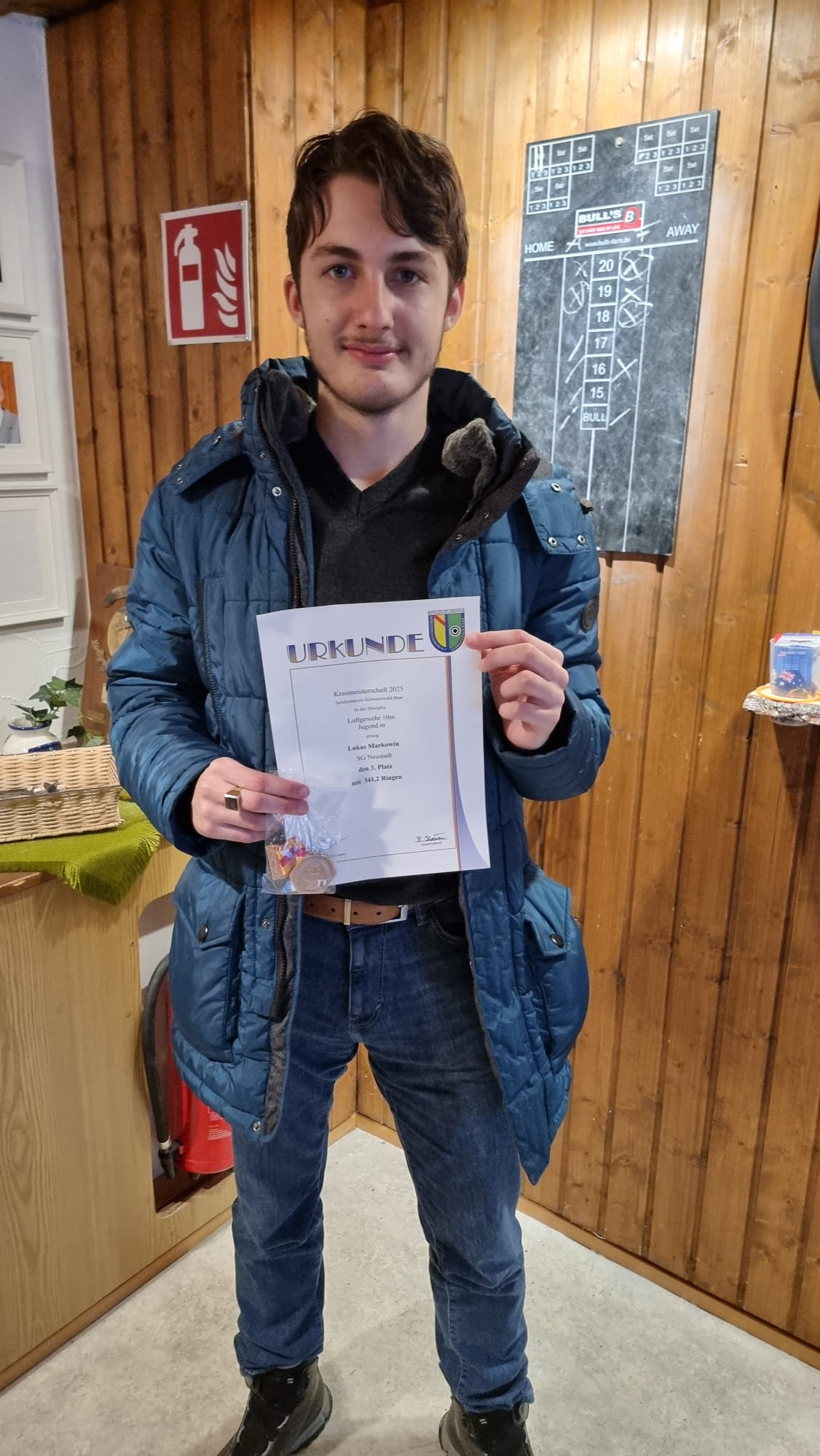 Anschließend hatte Jürgen Hall jede Menge zu tun um für jeden Schützen/in eine Urkunde zu drucken und die goldenen, silbernen und bronzenen Kreismeisterschaftsmedallien zuzuordnen. Die Siegerehrung fand dann bei unserer Wirtin Beate Ergele in der gut gefüllten Schützenwirtschaft statt.