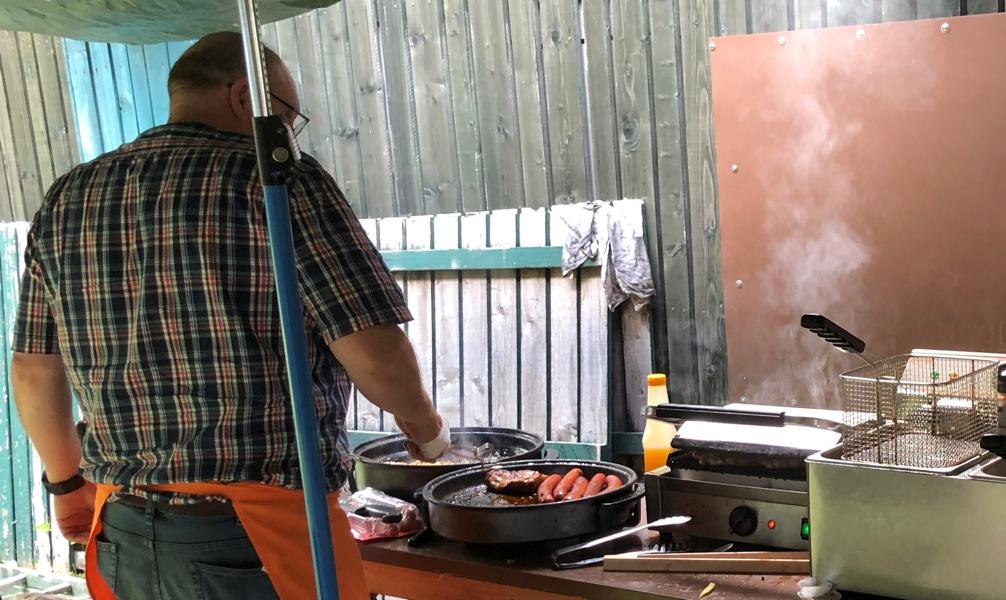 Traditionell versorgte unser Oberschützenmeister Peter Sackner die Gäste wieder als Grillmeister mit leckerem Grillgut und Pommes.