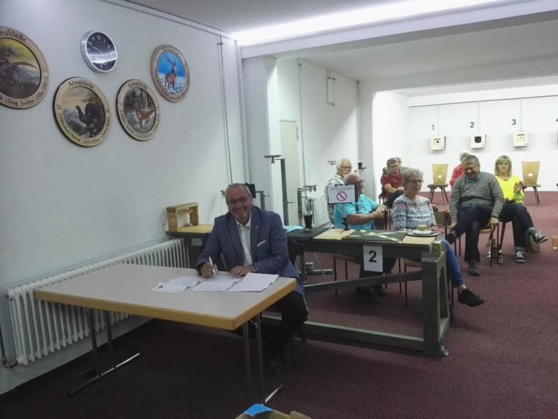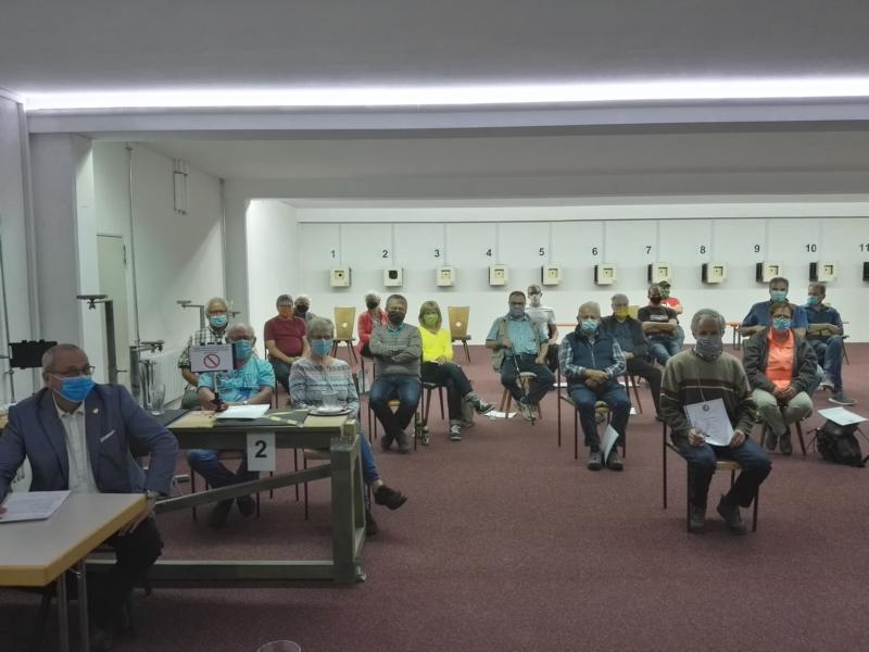Aufgrund der Corona-Situation hielten wir die Versammlung in unserer Luftgewehrhalle ab, weil wir dort den Abstandregeln am besten gerecht werden konnten.