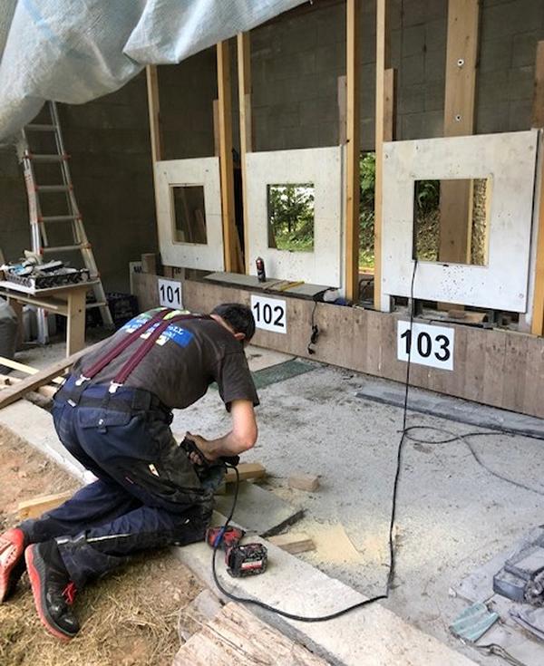 Arbeitseinsatz für die neuen Kugelfänge am KK100m Stand