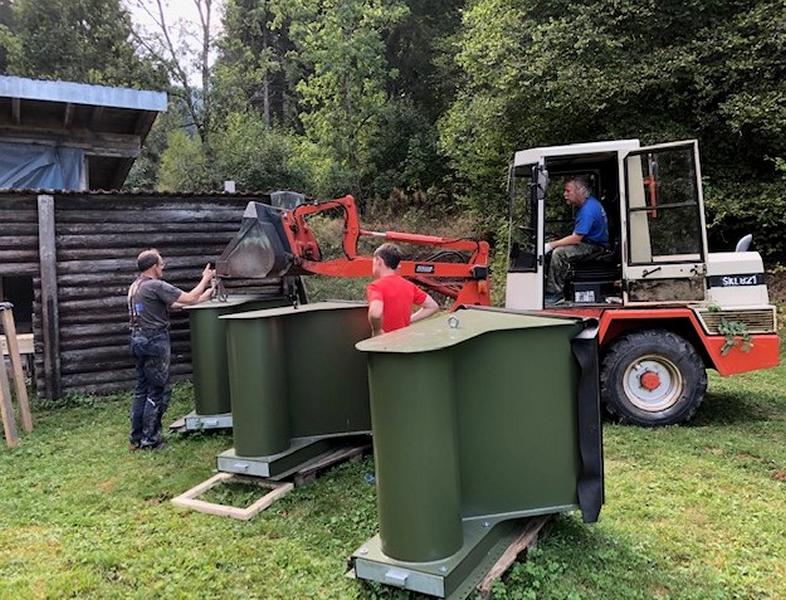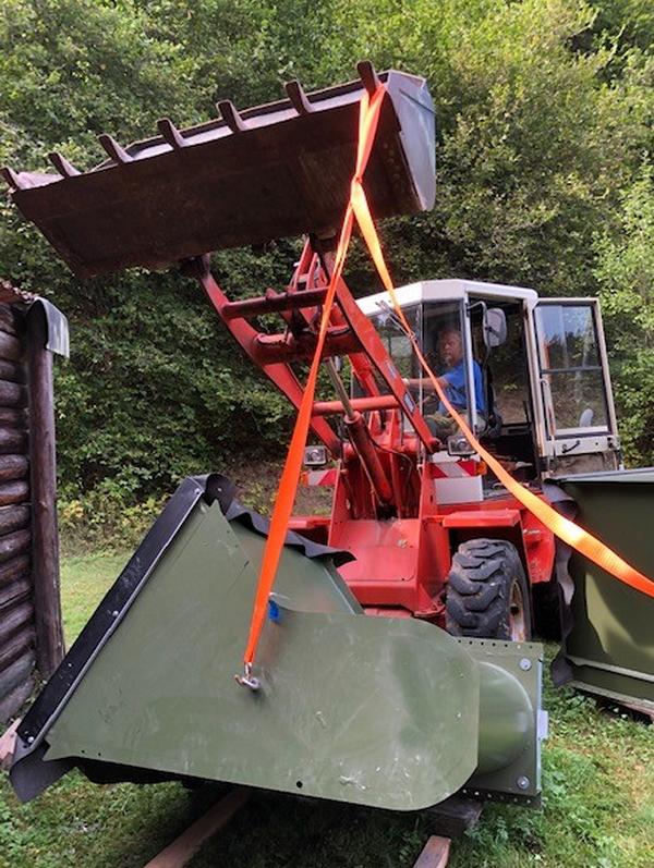 Wie in unserem Bericht vom 05.09. << könnt ihr hier nochmals lesen >> beschrieben, sind wir seit wenigen Wochen stolze Besitzer von drei Kugelfängen der Firma MaRep KFS AG. Die Montage dieser mächtigen Teile bringt große bauliche Veränderungen mit sich, die teils auch schweres Gerät verlangen.