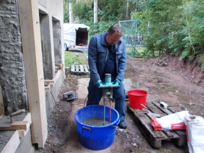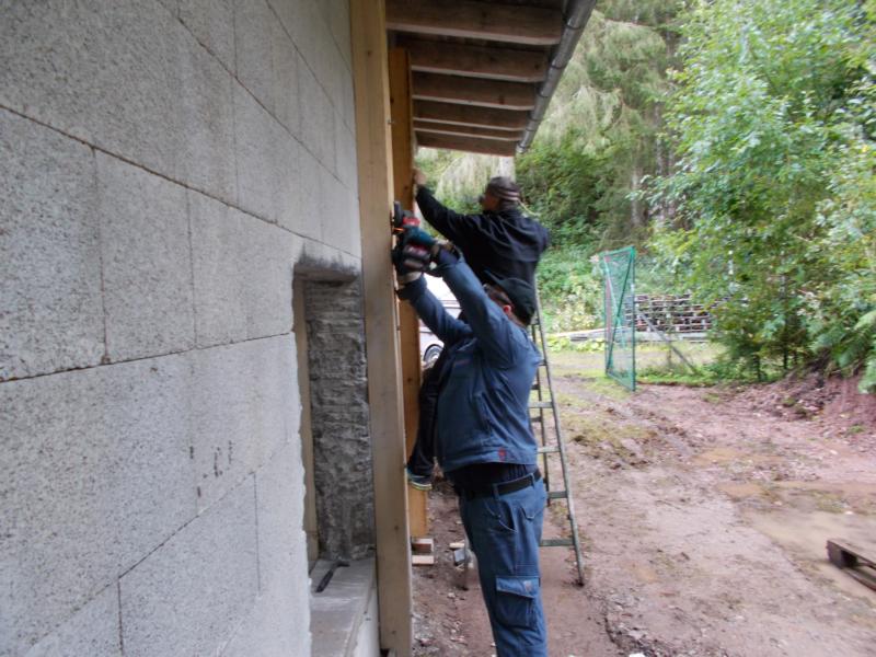 Am Mittwoch 23. September und Freitag 25. September betonierten wir die Wandsimse und montierten noch den 2. Stützpfosten an die Wand. Jetzt fehlt noch die kleine Stützmauer damit wir die Kugelfänge fixieren können, die Steine und den Beton hat Nikolaus besorgt und am Mittwoch wollen wir die Mauer dann betonieren. Somit geht der Umbau in seine letzte Phase.