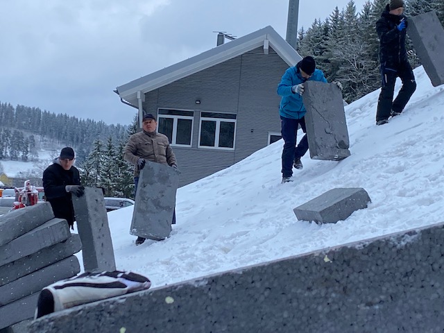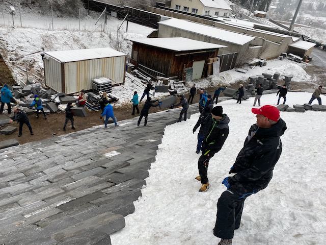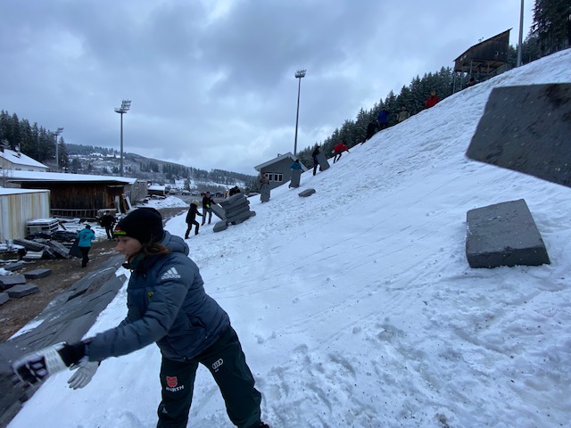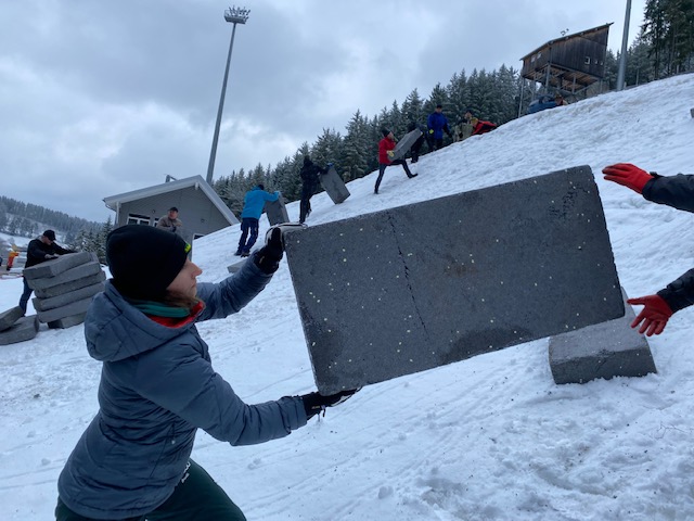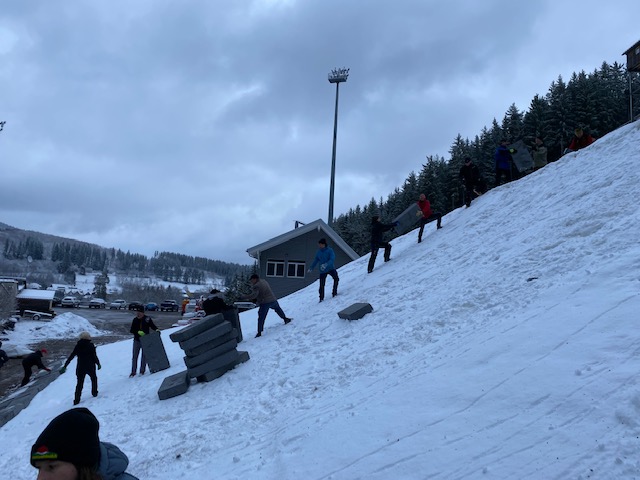 Unter Anleitung von OK-Chef Joachim Häfker und Schanzenchef Matthias Schlegel wurden die Helfer zügig eingeteilt und so hatten alle gleich kräftig mit anzupacken.