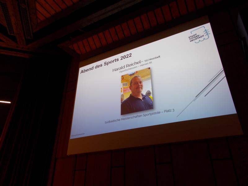 Mit einem abwechslungsreichen Programm lud die Arbeitsgemeinschaft der 20 sporttreibenden Vereine in Titisee-Neustadt, am 12.11.2022 zum diesjährigen Abend des Sports in das Kurhaus Titisee ein. ARGE-Vorsitzender Fritz Scherzinger freute sich einen sehr gut gefüllten Saal begrüssen zu dürfen. Zahlreiche Sportbegeisterte aus Titisee-Neustadt und auch aus unserer Schützengesellschaft sind ins Kurhaus gekommen, um die Leistungen der Sportler zu würdigen. Neben der Sportlerehrung war der Abend auch dafür da um verdiente "Ehremamtler" zu würdigen.