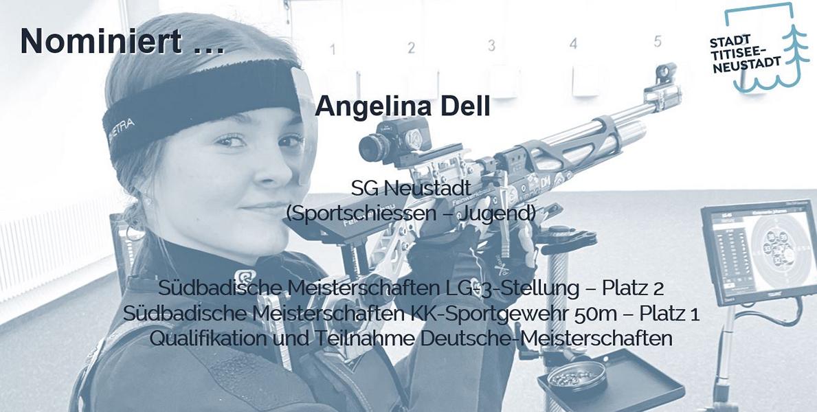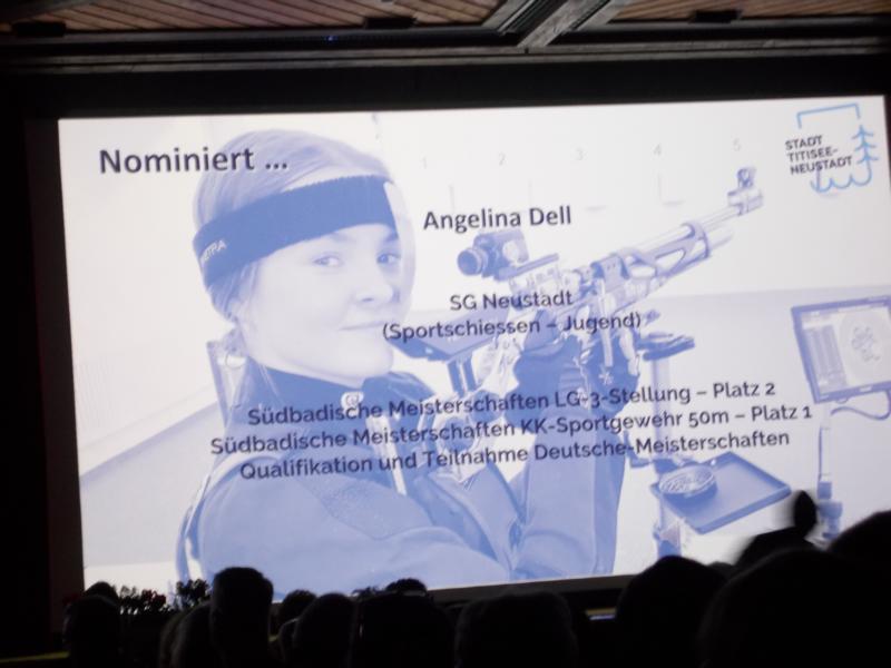 Wir freuten uns rießig, dass wir bei den Einzelsportlern mit unserer Jungschützin Angelina Dell zum ersten Mal für die "Newcomerin" des Jahres nominiert waren. Das ist schon etwas ganz besonderes, weil es eine gute Möglichkeit bietet unsere Sportart dem breiten Publikum vorzustellen. Hierfür haben sich Timo und Angelina richtig ins Zeug gelegt und einen tollen Videoclip über Angelinas Trainingsalltag produziert, der dann vor der Wahl im Kurhaus gezeigt wurde. Angelina stand im Wettbewerb mit Annika Straub (Skilanglauf) und Adina Daubner (Mountainbike).