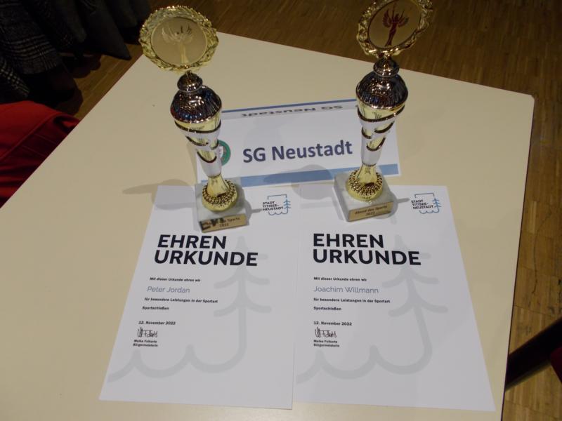 In der Ehrungsrunde für verdiente Ehrenamtler freuten wir uns, dass Nikolaus Willmann und Witali Dell für ihr Engagement in unserer Schützengesellschaft von der Stadt geehrt wurden. Schön, dass wir so engagierte Menschen in unserem Verein haben.