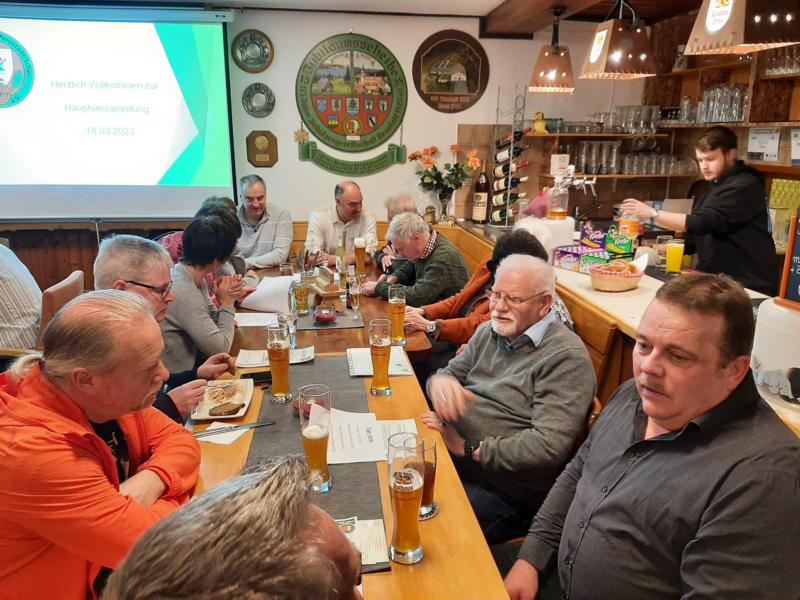 Dieses Jahr mussten wir sogar noch Tische aus unserer Luftdruckhalle nach oben in die Wirtschaft holen, weil so viele Mitglieder und Freunde unserer Schützengesellschaft unserer Einladung zur Hauptversammlung gefolgt sind. Die Versammlug ging harmonisch und ziemlich zügig von statten, trotz dass wir noch Wahlen hatten.