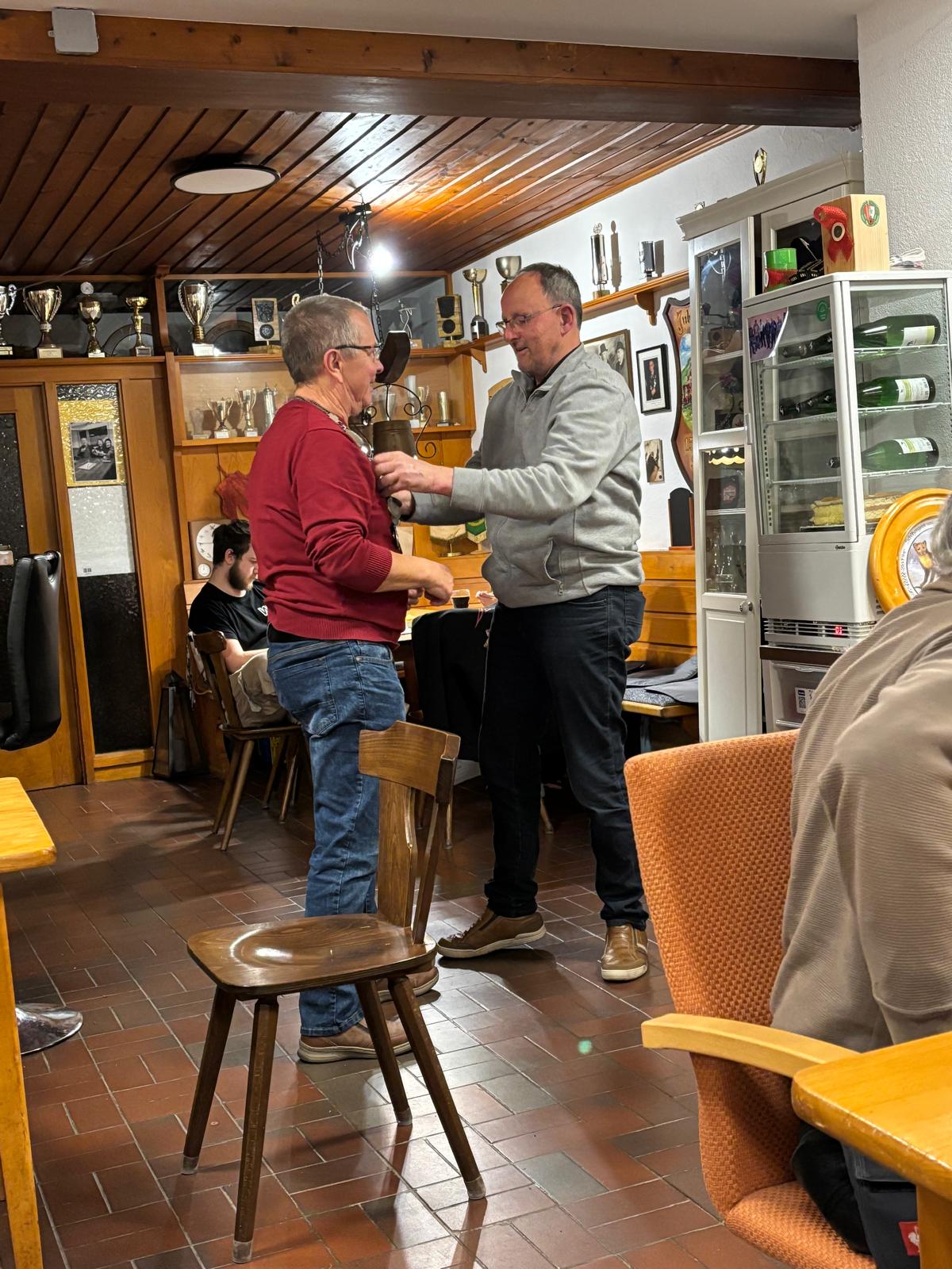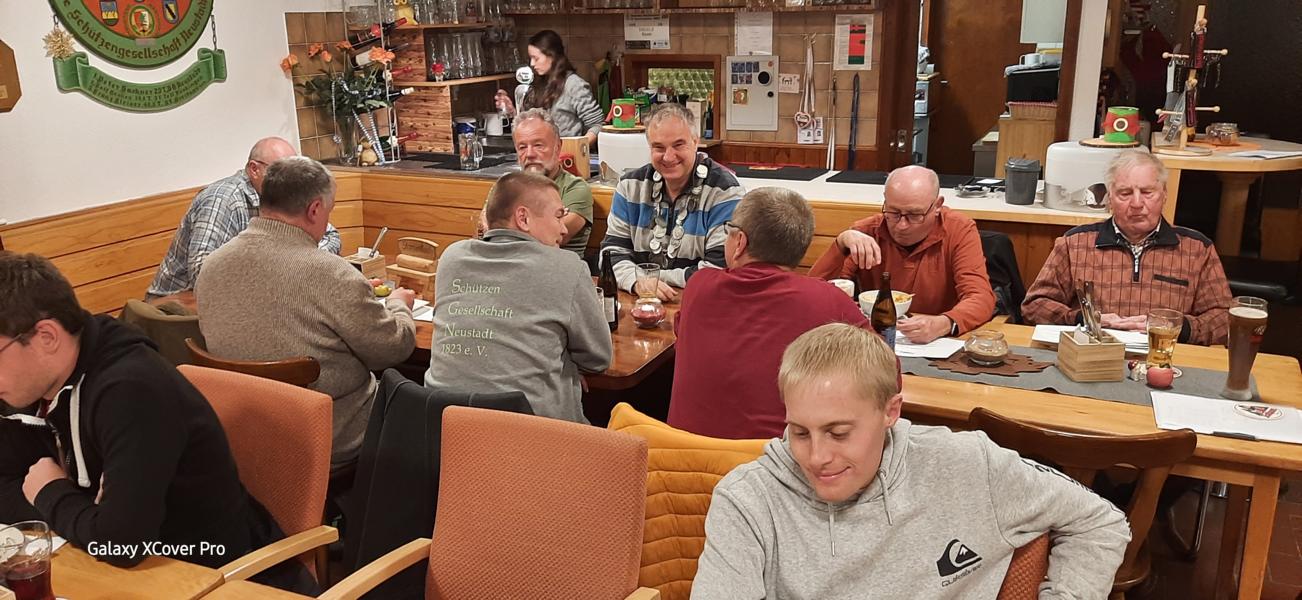 Traditionell übernehmen nach der Siegerehrung die neuen Könige/innen die Zeche der anschliessenden Feier. Ein herzliches Dankeschön hierfür an Peter, Peter und Adrian. In geselligem und familiären Rahmen ging eine kleine aber feine Königsfeier zu Ende.