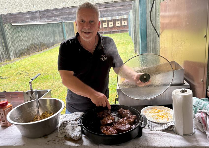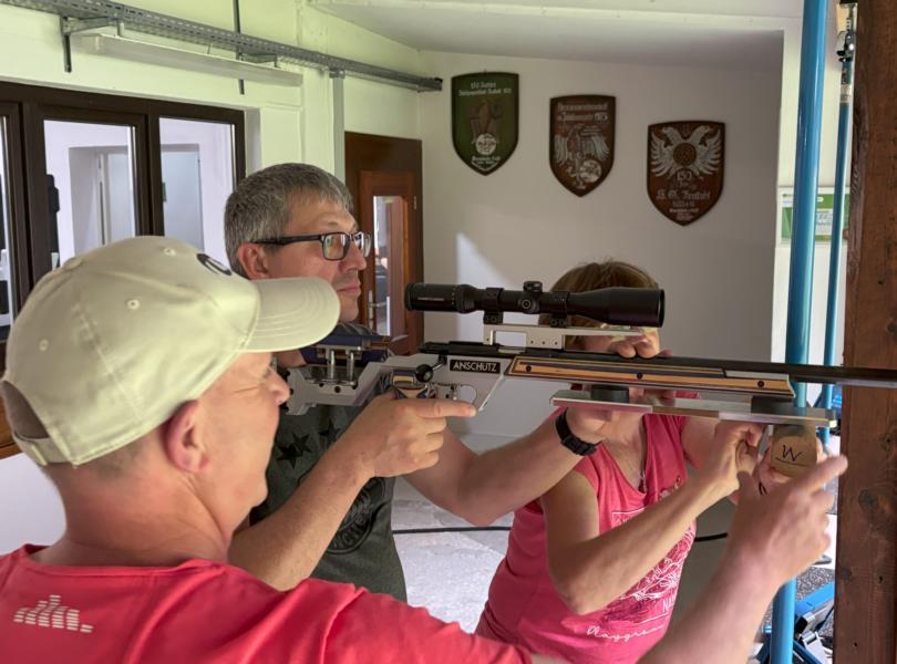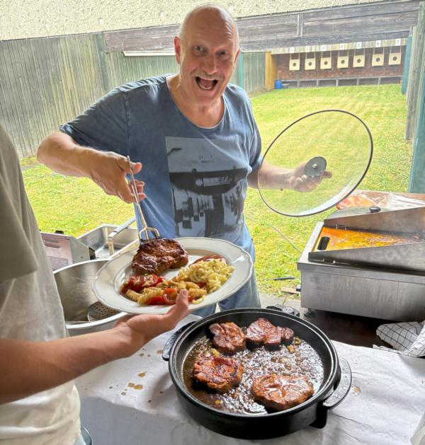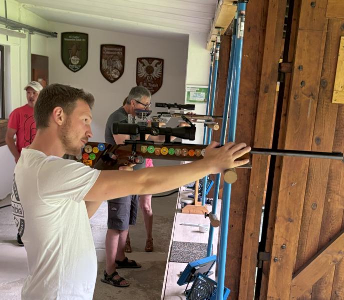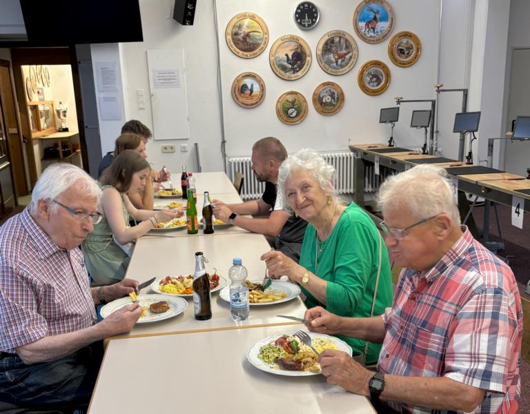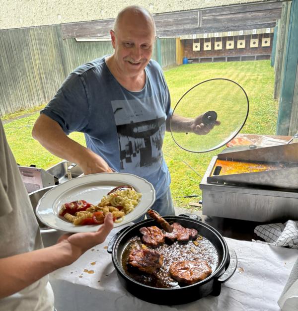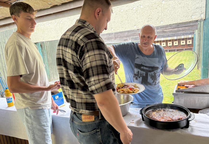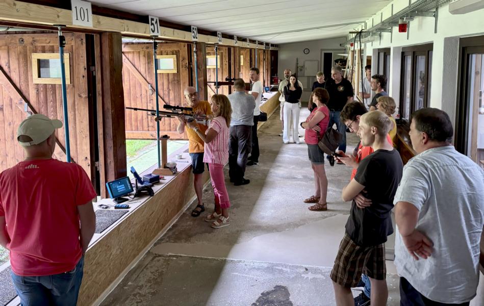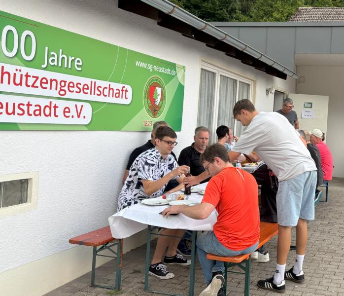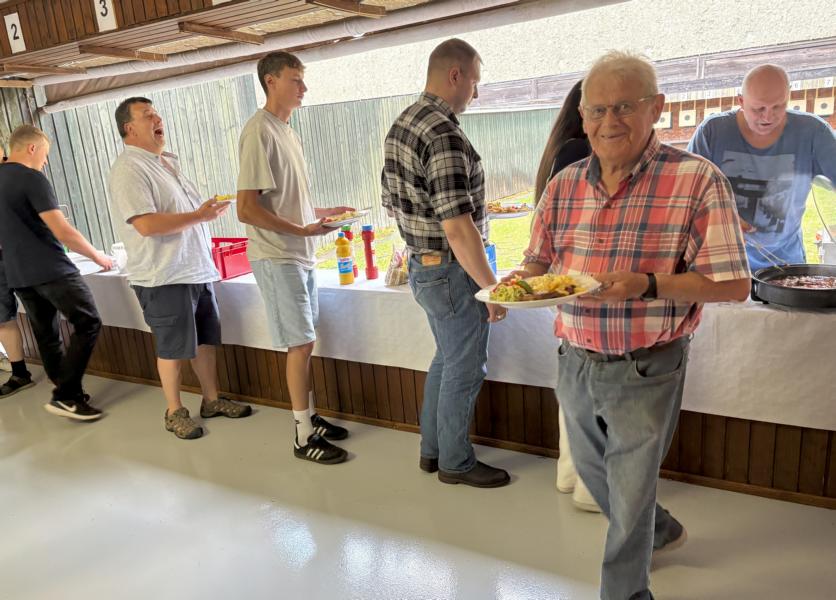 Logo SG kleinam Samstag, den 16.08.2025 luden wir wieder alle Vereinsmitglieder mit Partner, Kindern, Lebensgefährten zu unserem traditionellen Grillfest ans Schützenhaus ein. Bei wecheselhaftem Wetter freuten wir uns, dass viele unserer Einladung gefolgt sind. Neben vielen leckeren Salaten- und Kuchenspenden uns unser Chefkoch und OSM Peter wieder mit Gegrilltem und Pommes verwöhnt. Viele Gäste nutzen die Chance mal einen Blick hinter die Kulissen unserer neuen Meyton-Anlage zu werfen und auch einige Schüsse darauf zu machen.