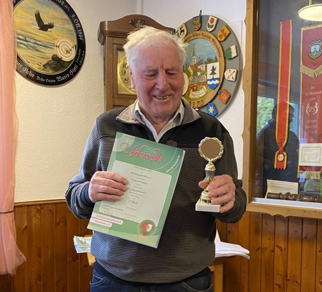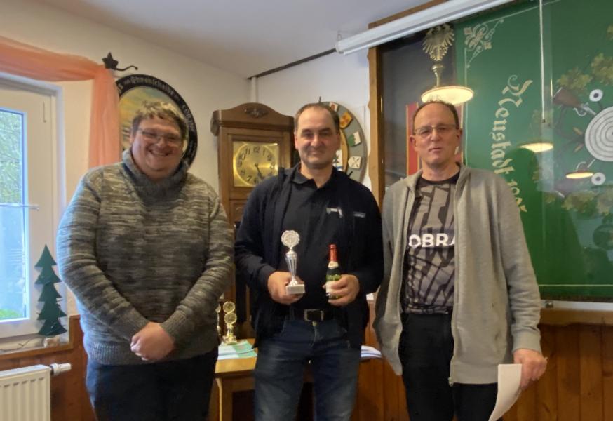 Die Ehrenscheibe gewann dieses Jahr mit einem supertollen 1,0 Teiler Edmund Rosenthal vom BSC vor Rainer Vogelbacher von der FFW Schwärzenbach 2 mit einem 4,0 Teiler und Fridolin Faller von den St. Raphael Herren mit einem 4,1 Teiler.